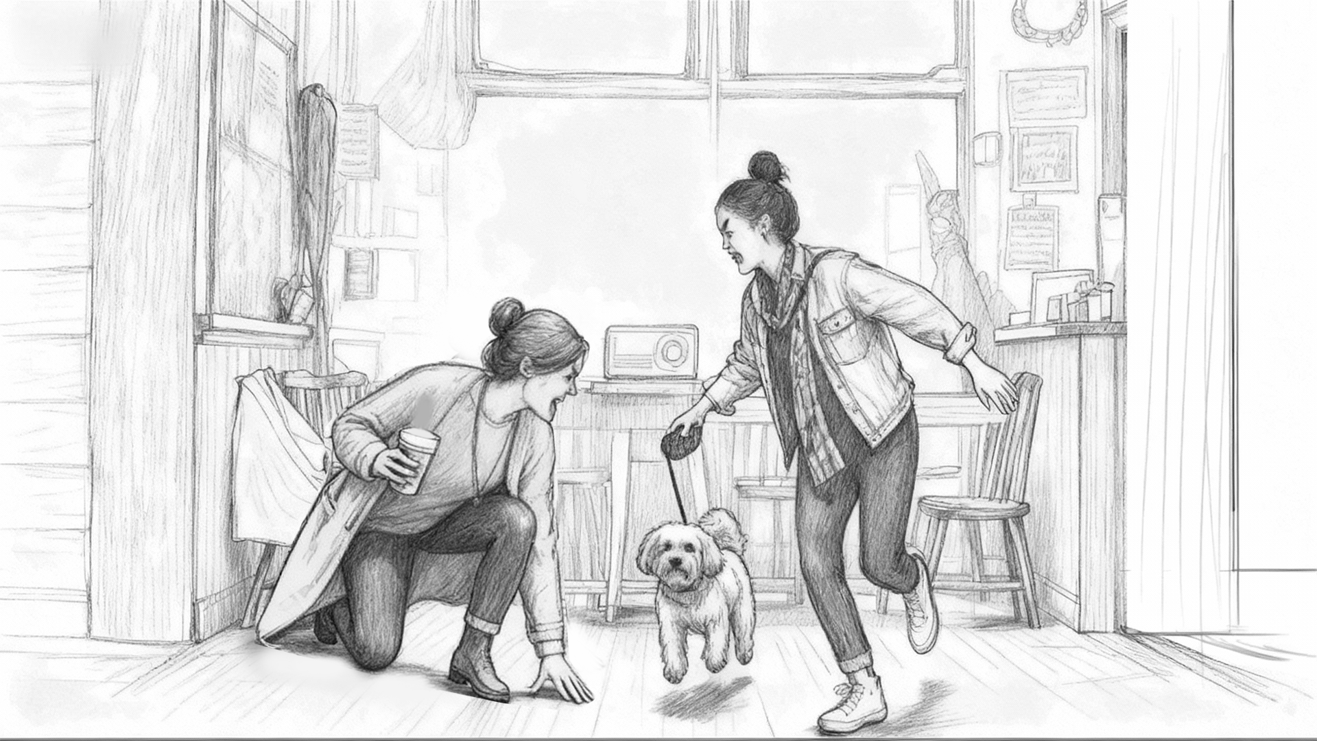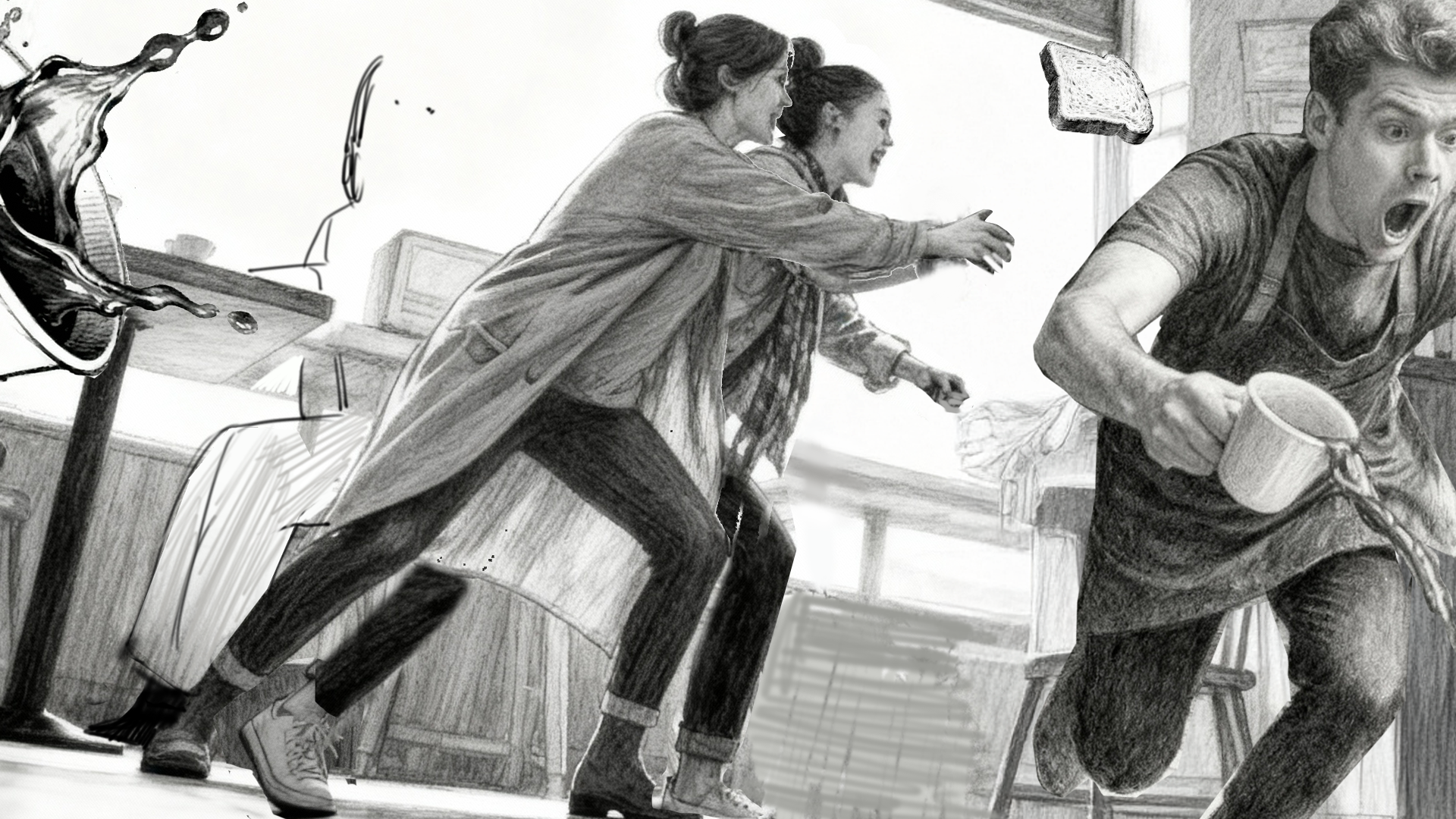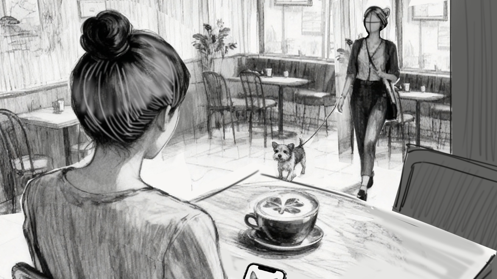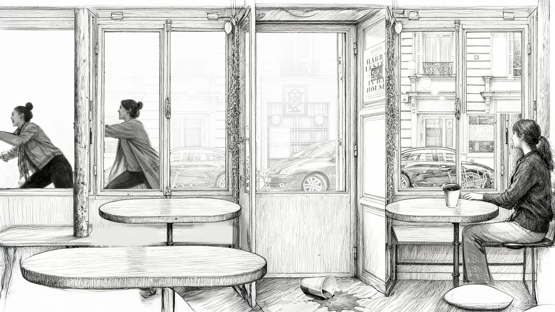 To move fast while keeping the work cohesive, I built a hybrid workflow: I used generative AI (Midjourney, Kling) to rapidly explore backgrounds, textures, small elements, and motion tests, while hand-drawing the key characters to maintain consistent acting and design.